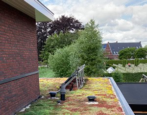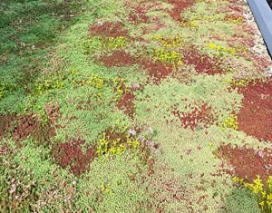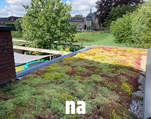 Laat je niet misleiden, dit is geen sedum-kruidendak, maar een standaard sedumdak. Daar zitten 12 verschillende soorten sedumplanten in met allemaal hun eigen bloeiwijze.